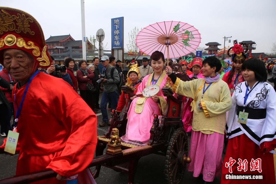 4月2日上午,2015中国(开封)清明文化节踏春巡游活动在开封清明上河园启动,上千民众身着宋装踏春巡游,感受古都开封的宋韵春色,欣赏盛世清明的如画美景。 中新社发 王中举 摄
