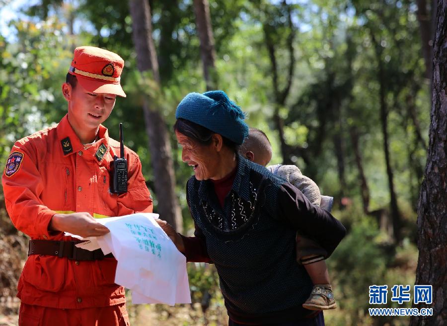 4月3日,武警凉山森林支队官兵向居住在林场周边的群众宣讲防火常识。清明节来临,担负四川省凉山彝族自治州防火勤务的武警森林部队官兵携带灭火装备在祭祀密集区和森林高火险地区加强巡护,并向前来祭祀的市民宣传防火常识,引导群众文明祭祀。新华社发(程雪力 摄)