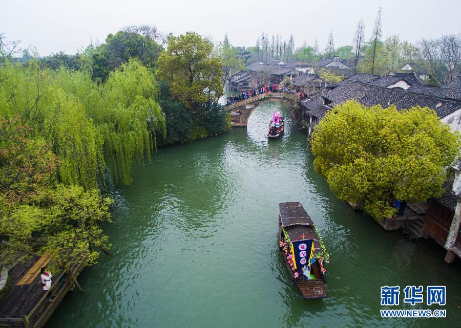 4月3日,具有江南水乡特色的“蚕花娘娘”乌篷船被鲜花装点一新,行驶在乌镇西栅的河道上,祈求今年风调雨顺,能顺利进入春耕和养蚕的季节。当日,浙江省桐乡市乌镇开启了传统的“香市”盛会,为市民和游客呈现踏青游春、蚕花圣会、清明美食、民间戏曲等众多特色活动。让人们在春暖花开之际,感受江南古镇别样的民俗之美,弘扬和传承江南水乡的民间传统文化。据了解,乌镇“香市”源于盛唐时期,亦称乌镇烧香市,与杭州昭庆寺烧香市、苏州寒山寺烧香市并称江南“三大烧香市”。每年清明时节,烧“回头香”的香客纷至沓来,香火甚是旺盛。南宋时,乌镇“香市”规模空前盛大,同时,融入了清明时节当地农民祈求“蚕花廿四分”的祭奠活动,因此,乌镇“香市”也称乌镇“蚕花庙会”“蚕花圣会”。新华社记者 徐昱 摄