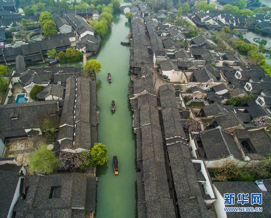 4月3日,空中俯瞰乌镇春色。当日,浙江省桐乡市乌镇开启了传统的“香市”盛会,为市民和游客呈现踏青游春、蚕花圣会、清明美食、民间戏曲等众多特色活动。让人们在春暖花开之际,感受江南古镇别样的民俗之美,弘扬和传承江南水乡的民间传统文化。据了解,乌镇“香市”源于盛唐时期,亦称乌镇烧香市,与杭州昭庆寺烧香市、苏州寒山寺烧香市并称江南“三大烧香市”。每年清明时节,烧“回头香”的香客纷至沓来,香火甚是旺盛。南宋时,乌镇“香市”规模空前盛大,同时,融入了清明时节当地农民祈求“蚕花廿四分”的祭奠活动,因此,乌镇“香市”也称乌镇“蚕花庙会”“蚕花圣会”。新华社记者 徐昱 摄