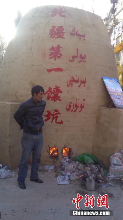 莫明·吾甫尔的徒弟一大早就将馕坑架上了火,给炉加温。朱景朝 摄