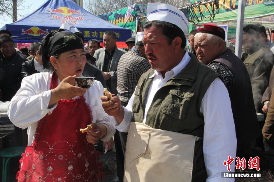 13时许,莫明·吾甫尔夫妻二人忙里偷闲喝口水,吃口馕。他说他已经3天没合眼了。朱景朝 摄