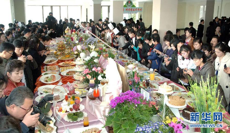 这是朝中社4月3日提供的朝鲜第20届太阳节料理节的照片。新华社/朝中社