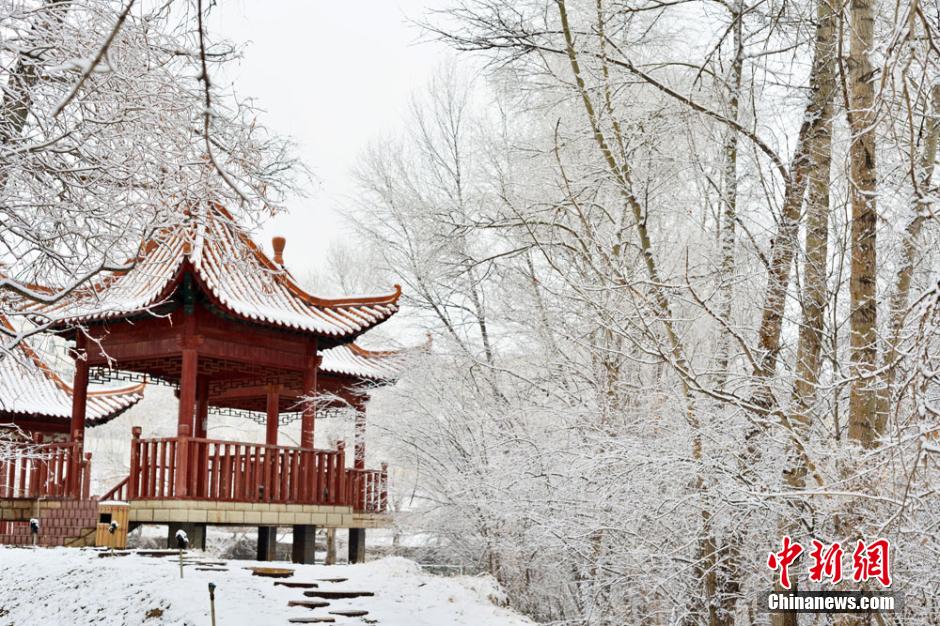 4月3日,地处河西走廊中部、祁连山北麓的甘肃肃南裕固族自治县在一场春雪过后银装素裹,其境内多地出现雾凇美景。当地“裕固家园”内白雪与绽放的“春色”交织在一起格外美丽,吸引了不少民众观赏拍照。武雪峰 摄