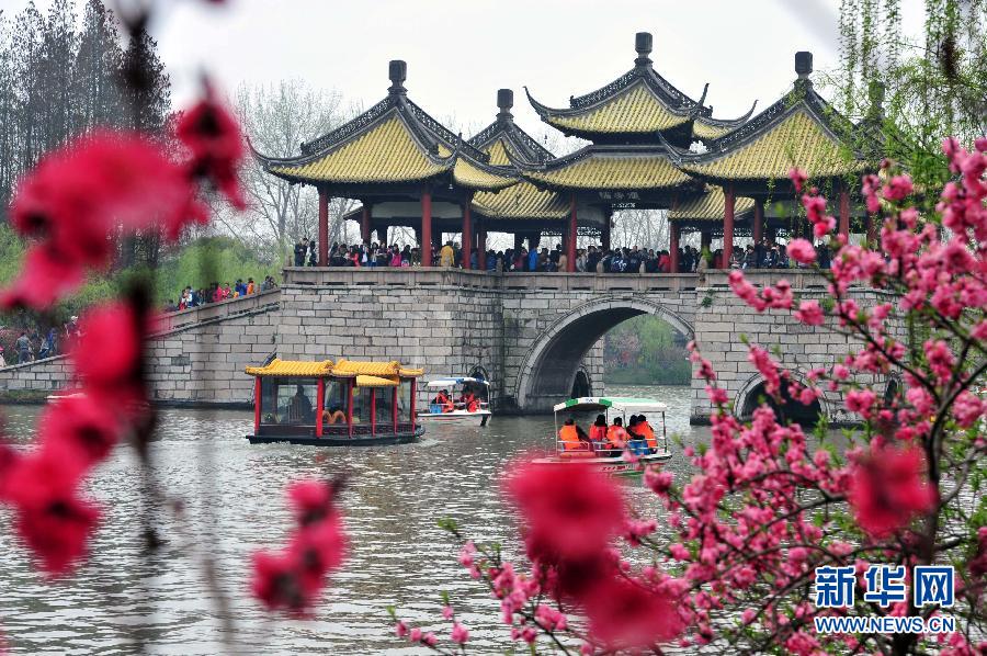 4月5日,江苏扬州瘦西湖景区五亭桥上游客如潮。清明假期期间,全国各地公园、景区人头攒动,人们走到户外踏青赏绿,尽情享受美丽春光。 新华社发(刘江瑞 摄)