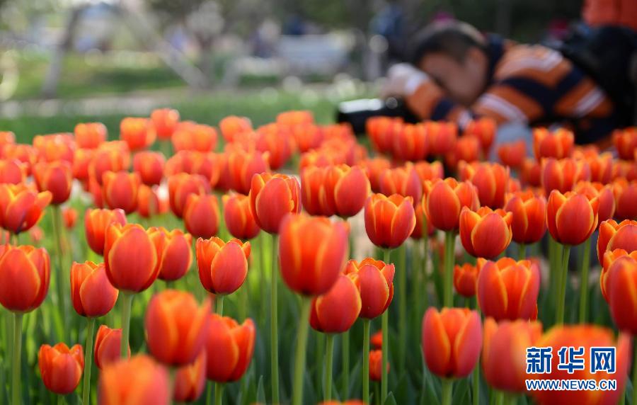 4月6日,游客在石家庄植物园拍摄郁金香。清明节期间,河北石家庄市植物园举办第三届荷兰郁金香文化节,展出120多个品种逾百万株郁金香。本届郁金香文化节特意从荷兰引进了“竞赛”、“幸福一代”等36个珍稀品种,花期预计将持续至5月。新华社记者王晓 摄