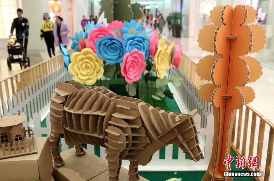 4月6日,主题为“环境保护”的纸艺环保展亮相南京,近百件纸张制作的牛羊、树木、鲜花,废旧报纸制成的时装等作品,呼吁民众对保护环境的关注,倡导绿色环保生活。中新社发 泱波 摄