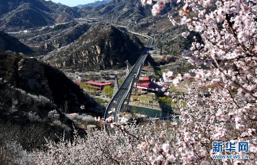 4月7日,汽车行驶在被山花围绕的北京怀柔山区111国道之中。眼下,111国道北京怀柔北部山区公路两旁杏花、山桃花竞相开放,车辆穿行,有赏心悦目之感。 新华社发(卜向东 摄)
