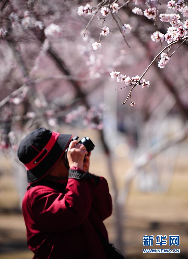 4月7日,在呼和浩特市公主府公园,一位游客在拍摄桃花。当日,呼和浩特市第二届桃花节在呼和浩特公主府公园开幕,吸引了众多游人前来赏花踏青。 新华社记者 董璐 摄