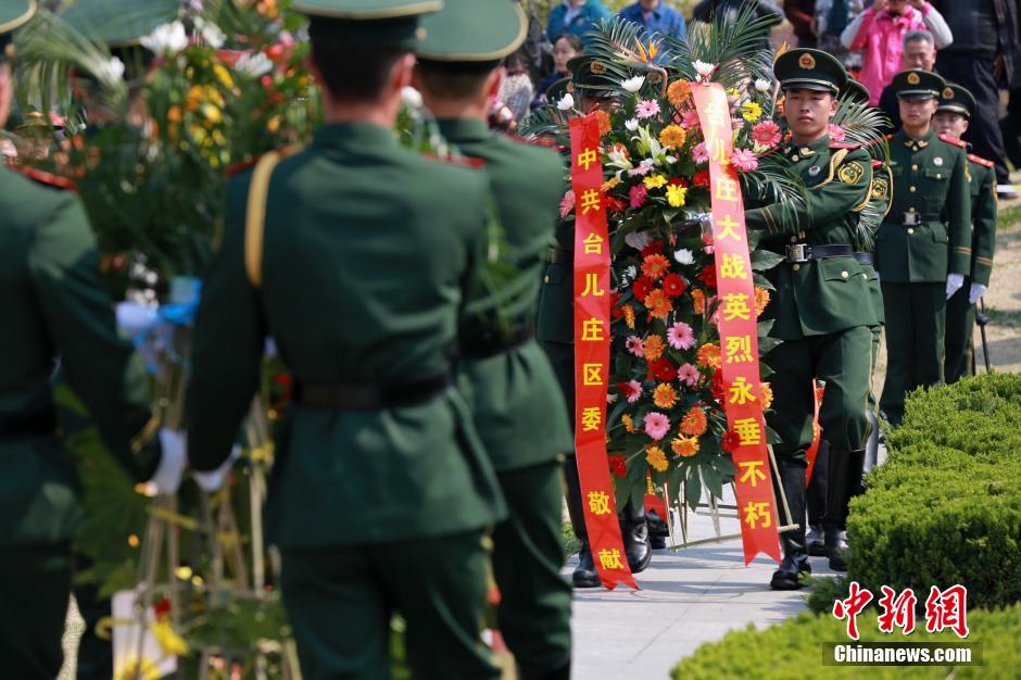 图为解放军官兵向烈士纪念碑敬献花篮。梁犇 摄