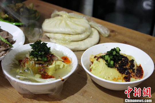 图为“浆水搅团”和“麻辣搅团”。刘玉桃 摄