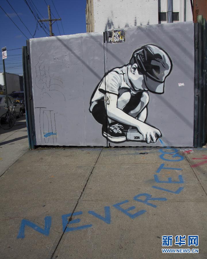街头涂鸦最早出现于20世纪60年代的美国,经过半个多世纪的发展,涂鸦已经成为风靡全世界的街头艺术。在美国许多城市的街道上能看到别具一格、妙趣横生的涂鸦作品。这是2014年11月14日在美国纽约布鲁克林拍摄的涂鸦作品。 新华社记者杨磊摄