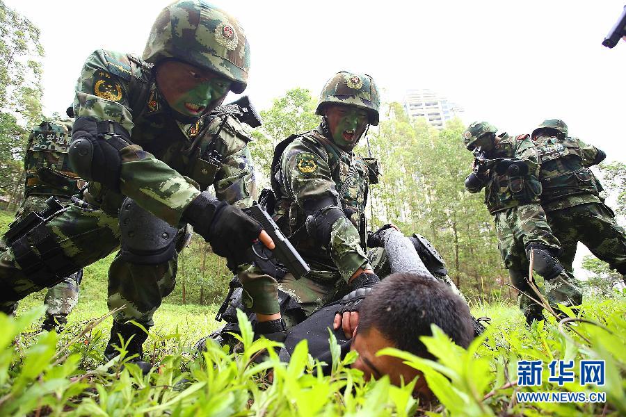 4月8日,一支特战分队在丛林练兵中将“毒贩”制服。四月的南国深山,天气闷热、蛇虫盛行,正值练兵好时节。当日,武警广西边防总队训练基地将两支特战分队带至野外陌生地域,开展以边境搜捕毒贩为背景的实战化对抗练兵,砥砺特战队员跟踪侦察、丛林搜捕、长途奔袭、战术协同等遂行多样化任务硬功。新华社发(李杭 摄)