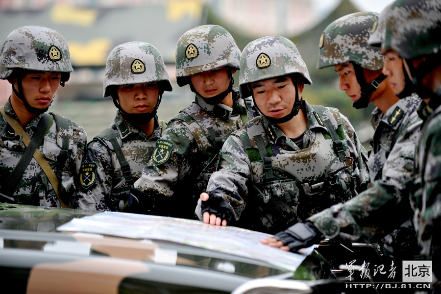 代理排长王亚东一掌劈开七块板砖。朱光伟摄影