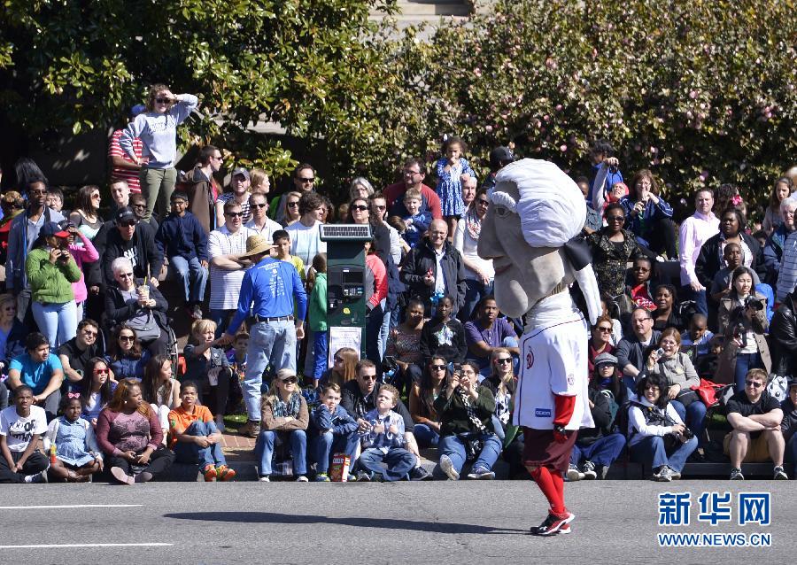 当天,华盛顿举行樱花节大游行。樱花节游行是华盛顿最重要的节日活动之一,每年吸引至少10万名来自世界各地的游客参加。 新华社记者殷博古摄
