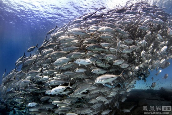 原标题:美国夫妇潜水偶遇鱼群“龙卷风”(组图)