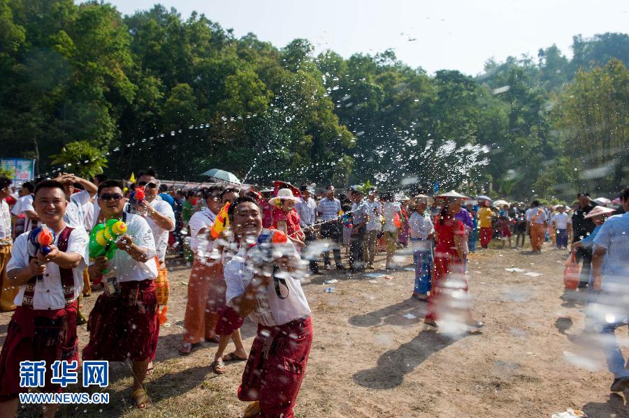 4月11日,在云南德宏傣族景颇族自治州芒市风平镇菲红村,群众在采花会上用水枪打水仗。当日,云南德宏傣族景颇族自治州芒市举行万人采花、对歌丢包、品尝千包饭等民俗体验活动,庆祝即将到来的泼水节。泼水节为傣族的新年,是云南省德宏傣族景颇族自治州傣族、德昂族最隆重的传统节日之一。新华社记者 胡超 摄