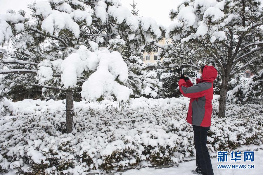 4月12日,市民在内蒙古克什克腾旗经棚镇街头拍摄雪景。受冷空气影响,内蒙古克什克腾旗4月11日下午开始迎来降雪天气。 新华社发(孙国树 摄)