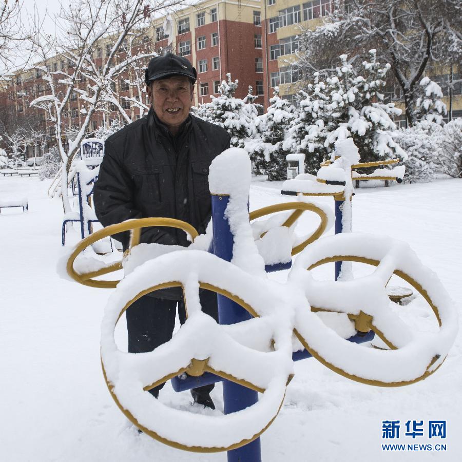 4月12日,在内蒙古克什克腾旗经棚镇,市民在雪中晨练。受冷空气影响,内蒙古克什克腾旗4月11日下午开始迎来降雪天气。 新华社发(孙国树 摄)