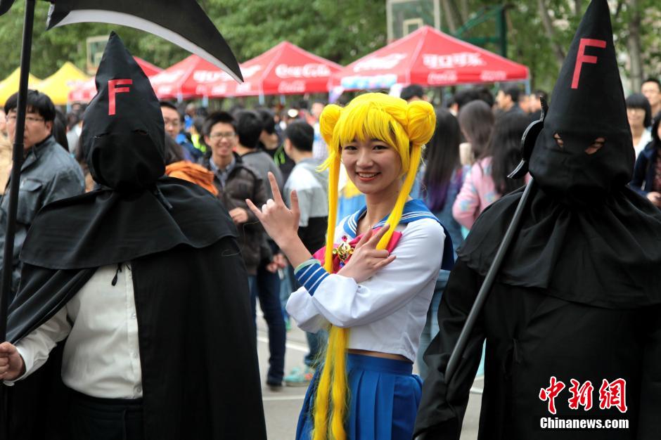4月12日,“西安交大第八届樱花祭”举行,上百位“Cosplay”爱好者云集一堂,各种动漫造型吸引了大量游人围观。 中新社发 张远 摄