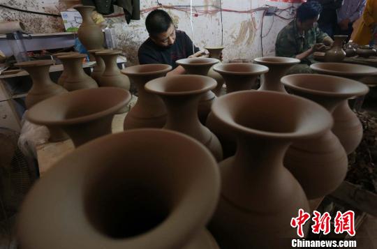 4月12日,在沁阳市神农陶文化产业园区,工艺师在修坯。 杨正华 摄
