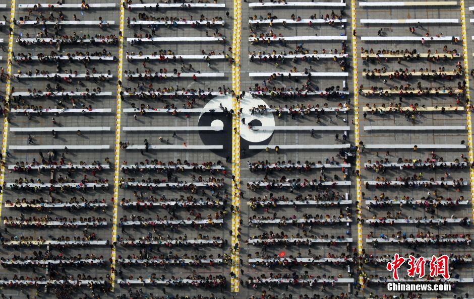 4月12日,河南全省18个地市17000多人同时包饺子,并通过视频同步听取了一堂烹饪课,创下“世界最大烹饪课”吉尼斯世界纪录。经过50分钟的激烈挑战,正式参赛的17000多名选手中,共计通过挑战的有效人数为4613人,成功打破了之前“最大规模烹饪课暨3687人同时包饺子”的吉尼斯世界纪录。中新社发 王中举 摄