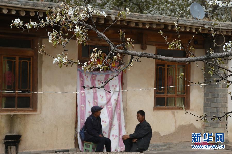 靖远县兴隆乡大庙村两位农民在院里聊天(4月11日摄)。新华社记者范培珅摄