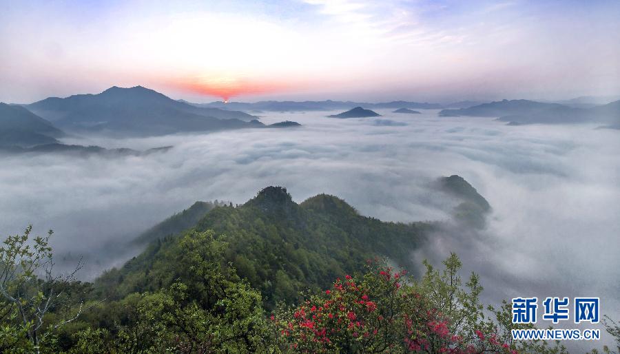屋脊山日出(4月9日摄)。新华社发(余良崇摄)