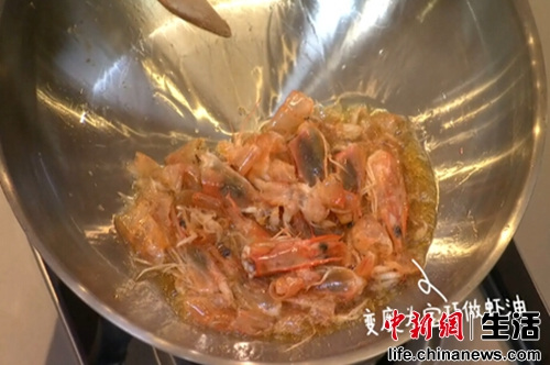做虾时,剥下来的虾头可千万别扔,小丫教你一个妙招,可以把虾头变废为宝。锅里放少许油加热,将剥下的虾头、虾壳放入油里熬制,当油里的气泡越来越小,虾头虾壳变成金黄色时,就可以关火了。这个用虾头、虾壳熬制的虾油,不管是炒菜,还是做面、吃面,都可以放一勺进去,味道极其鲜美。一次吃不完,可以放到冰箱里,用一个礼拜也没问题。