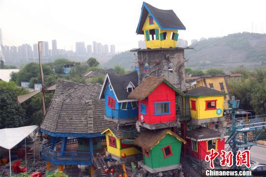 4月14日,重庆街头出现一具有巴渝地区吊脚楼风格的“树屋”。树屋由9间房屋组成,房屋楼顶到地面距离有12米,错落有致,外墙七彩艳丽,整体风格采用巴渝吊脚楼风格。