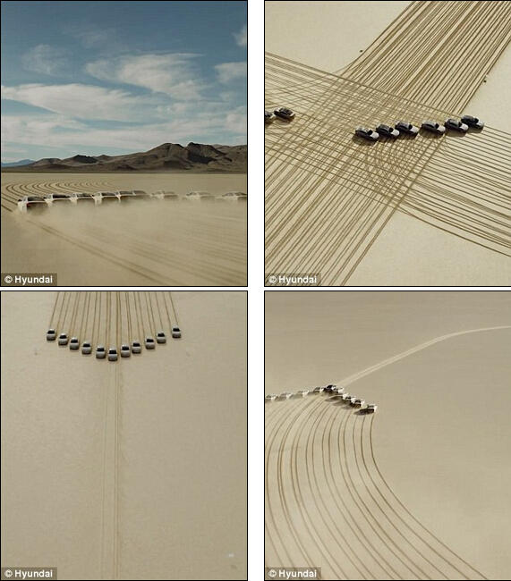 11辆车在直升机的帮助下,通过在湖床上留下的车辙拼出了斯蒂芬妮的心愿。而这几个字也打破了吉尼斯世界纪录。