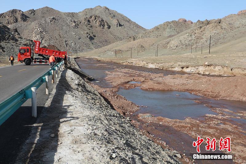 新疆省道221线遭融雪性洪水袭击多处路基被冲毁