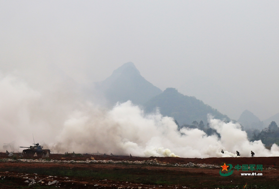 步兵利用烟雾弹掩护坦克发起冲击。张正举摄
