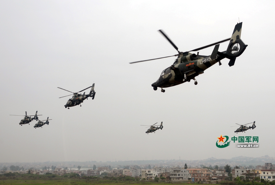 4月11日,南京军区某陆航团组织开展直升机编队飞行训练,不断锤炼部队实战化能力。肖庆明摄影报道 图片来源:中国军网