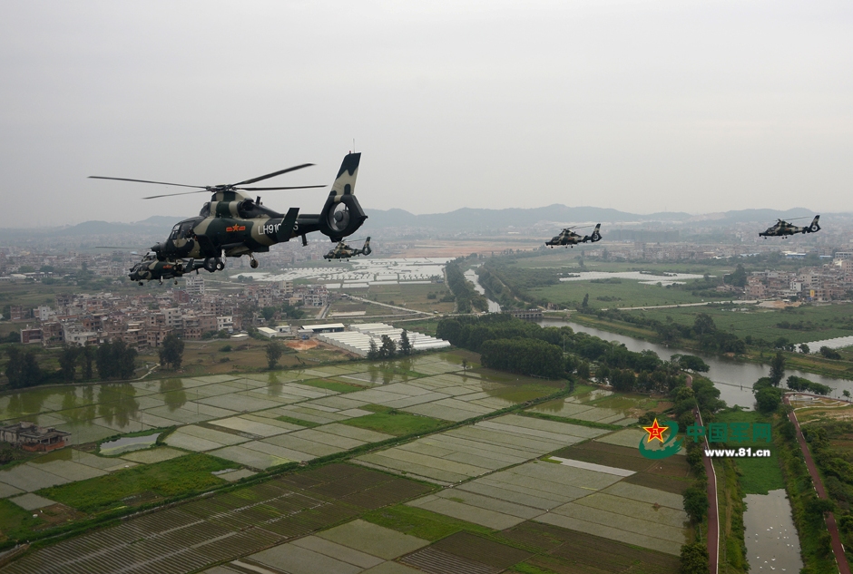 4月11日,南京军区某陆航团组织开展直升机编队飞行训练,不断锤炼部队实战化能力。肖庆明摄影报道 图片来源:中国军网