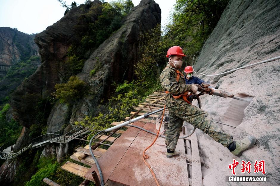 图为打眼工人正在工作。 杨华峰 摄