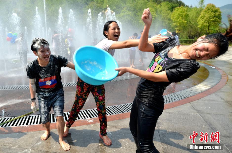 4月15日,四川文理学院组织开展首届老挝留学生泼水节,20名老挝留学生在该校喷泉广场中相互泼水庆祝新年。受活动欢乐氛围影响,该校更多大学生都被感染加入其中,只见男女学生们浑身湿透,激情上演“泼水大战”。每年的公历4月13-15日(或14-16日)是老挝的佛历新年,也叫泼水节或宋干节,这也是泰国、柬埔寨、缅甸和中国傣族共同的节日。钟欣 摄
