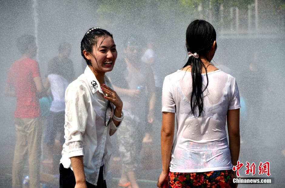 4月15日,四川文理学院组织开展首届老挝留学生泼水节,20名老挝留学生在该校喷泉广场中相互泼水庆祝新年。受活动欢乐氛围影响,该校更多大学生都被感染加入其中,只见男女学生们浑身湿透,激情上演“泼水大战”。每年的公历4月13-15日(或14-16日)是老挝的佛历新年,也叫泼水节或宋干节,这也是泰国、柬埔寨、缅甸和中国傣族共同的节日。钟欣 摄