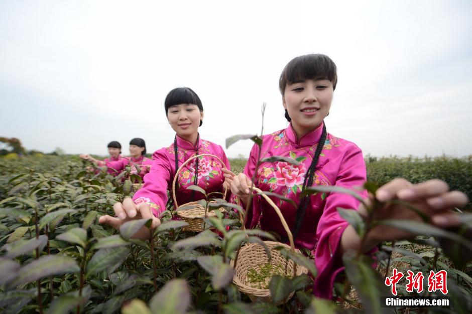 4月15日,正逢农历烟花三月时节,随着天气渐暖,扬州仪征登月湖畔的新茶进入采摘期,当日,被誉为“晚清第一园”何园的“千金”身着传统服装化身“茶娘”,在万亩茶园采摘茶叶,她们采茶优美的动作,纤手轻落茶梢,领略“清爽悠然的浓浓春意”绝美意境的同时,在炒茶师傅的指点下炒制茶叶,感受中国茶文化。据悉,扬州产茶历史悠久,早在唐宋时期就成为名茶产区之一,所产茶叶在宋代被列为贡品。孟德龙 摄