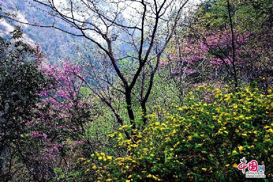 四月的天堂寨,树木吐出了新芽,百花依期绽放,春风里弥漫着绿草、红花、泥土的芬芳……这里没有城市的喧嚣和噪杂;这里青山绿水,空气清新纯净,没有城市里的雾霾;游客在这里可以尽情地享受春天里天堂寨的浪漫与风情……漫山的绿,心旷神怡。原生态的环境,沁人心脾,所到支出无不春意盎然,鸟语花香。