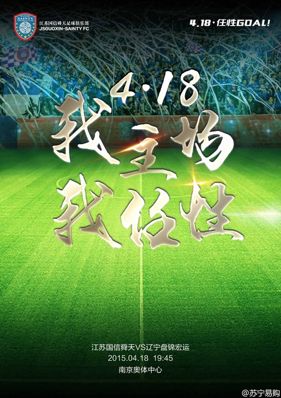 舜天官方微博写到:“亚洲区预选赛抽签揭晓,全民支持中国足球冲击世界杯!南京奥体据悉有望成为国足主场,让我们共同打造魔鬼主场!第六轮中超,江苏国信舜天携主场连胜之势迎战上轮铩羽广州的辽宁宏运,官方海报宣告:4.18,我主场!我任性!这是我们的主场,我们会一直战斗!”