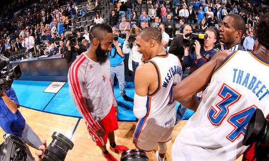 然后,就是维斯布鲁克进攻端的全面爆发,他不仅要承担起组织全队进攻的任务,还需要在大部分时间里扮演进攻终结者角色,从2月24日对阵步行者拿下20+11+10开始,维斯布鲁克连续4场砍下三双,从2月27日对阵开拓者轰下40分开始,他连续3场比赛得分40+,整个3月份,维斯布鲁克场均砍下30.9分,全明星赛前的场均得分领跑者哈登只有27.9分,维斯布鲁克完成了超越。