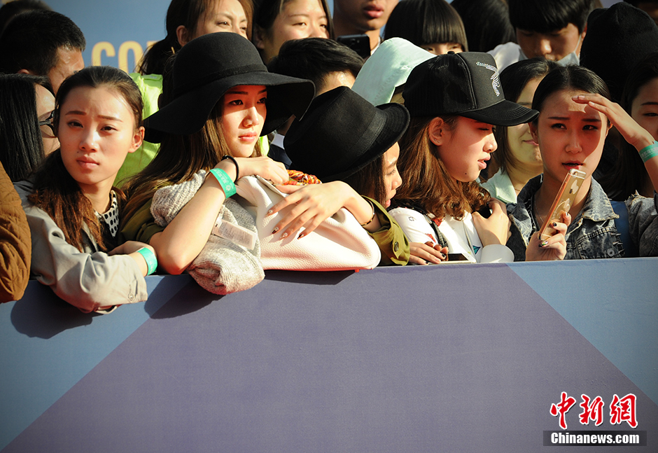 图为红毯外的美女粉丝团。 中新网记者 李卿 摄