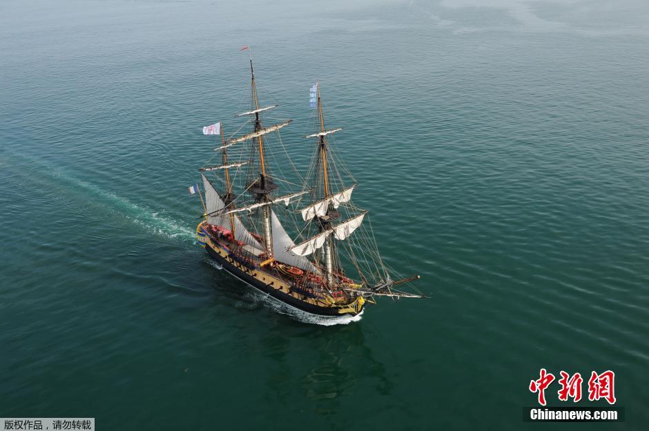 当地时间2015年4月15日,法国拉罗谢尔,为纪念在美国独立战争中发挥过重要作用的法国拉法叶侯爵,法国护卫舰“赫米奥娜号”(Hermione)号复制品开启其穿越大西洋的航行。