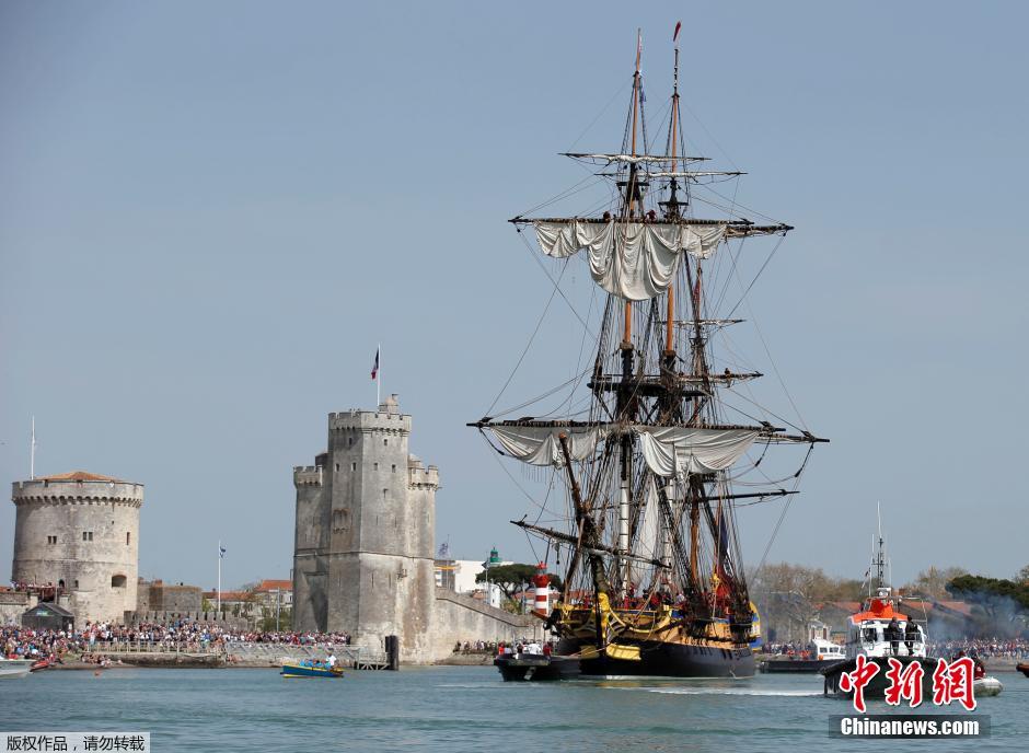 图为“赫米奥娜号”(Hermione)号复制品在拉罗谢尔港准备启程。