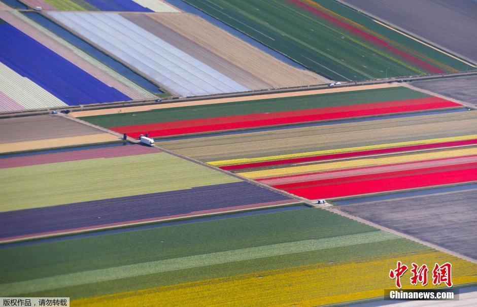 航拍世界最大郁金香田 似彩色地毯美不胜收