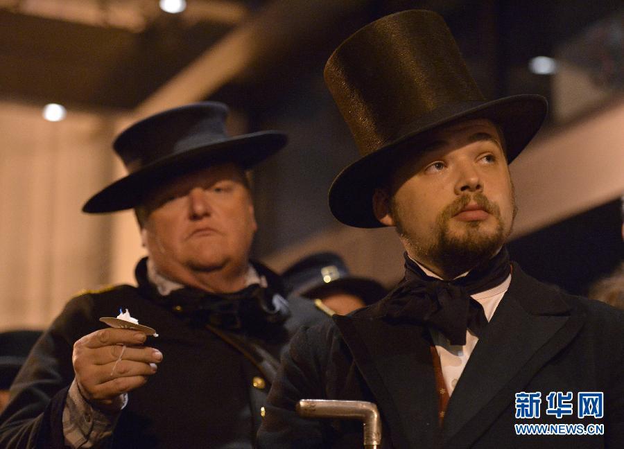 4月14日,在美国华盛顿的福特剧院外,人们参加纪念前总统林肯遇刺150周年的守夜活动。新华社记者 殷博古 摄 图片来源:新华网