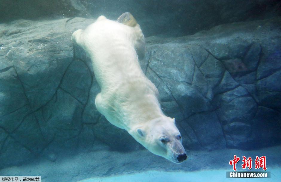 当地时间2015年4月14日,巴西圣保罗水族馆内,北极熊在为即将到来的新馆开展做准备。这些北极熊是2014年12月从俄罗斯转运到巴西圣保罗,他们将在4月16日与圣保罗的观众见面。