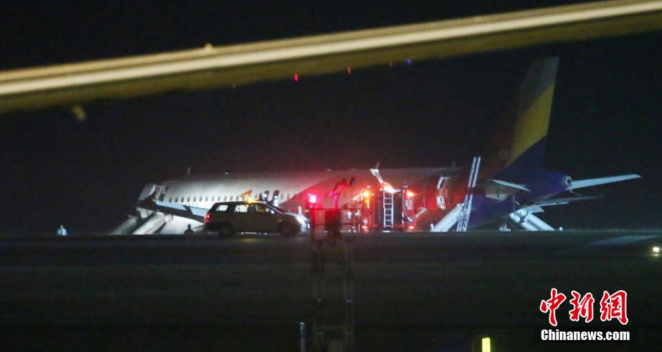 图为冲出跑道的韩亚航空A320客机,机上载有74名乘客及8名机组人员,主要是韩国人。
