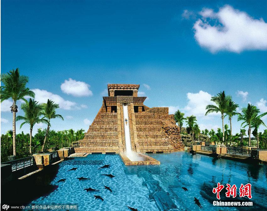 巴哈马建世界最刺激滑梯 从神庙顶冲入鲨鱼池